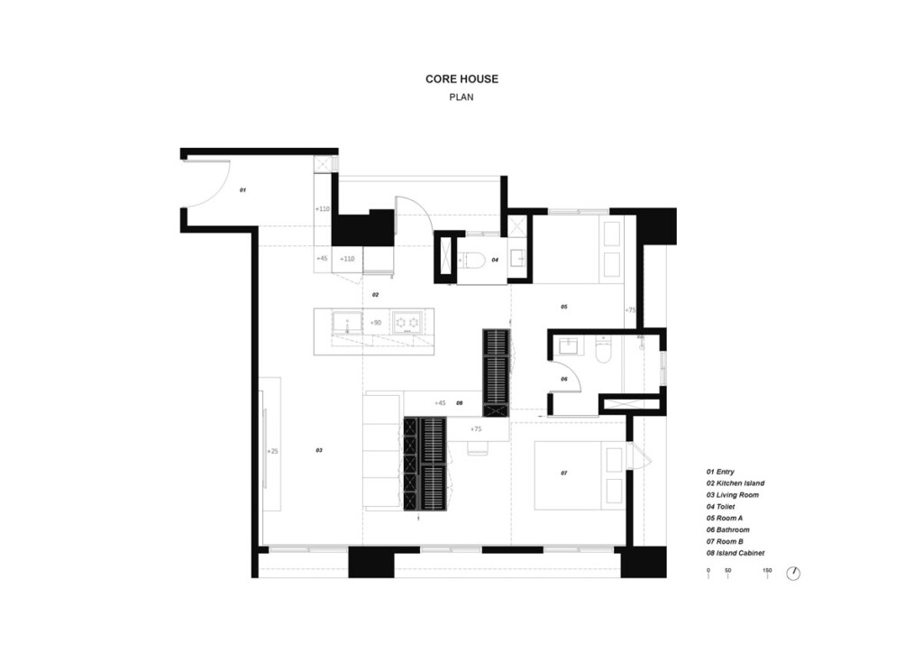 在「Core House︱中島之家」這個相對小尺度的住宅案中,張哲毓延續了他一貫的設計信念。他沒有用過多材料、色彩、或風格堆疊,而是透過幾何與動線的邏輯,重新整理空間與生活之間的連結方式。