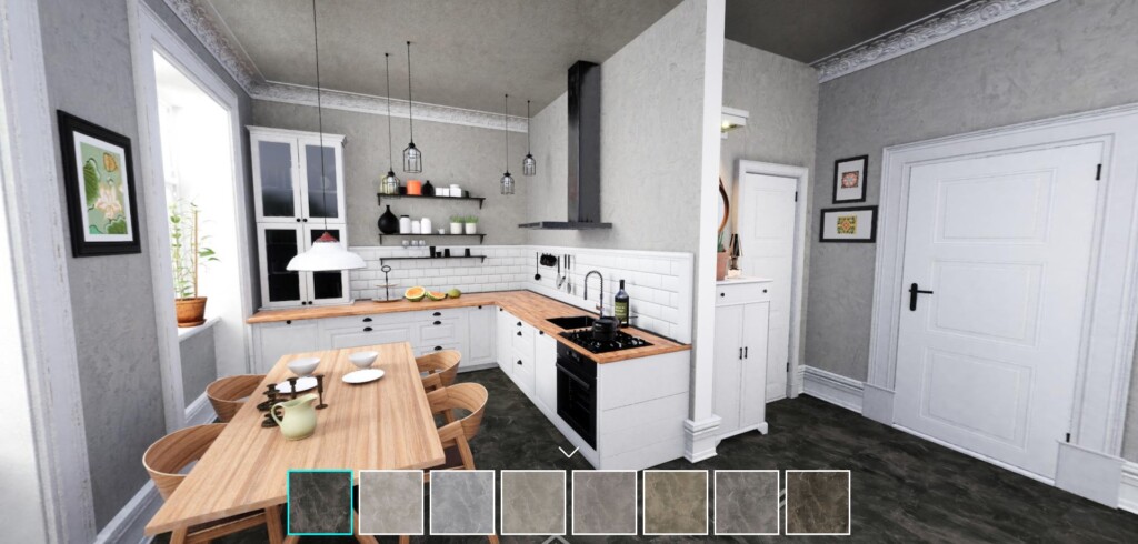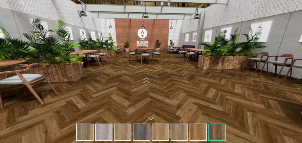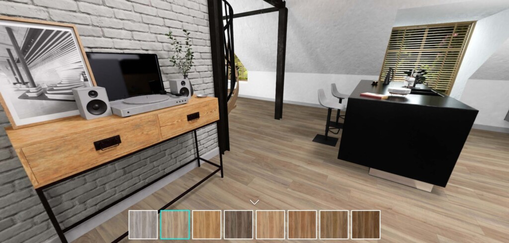 場景中的建材與家具皆可 即時置換:地板、牆面、家具樣式能直接切換,快速比較不同搭配的效果。這打破了傳統樣品屋的限制,讓設計溝通與決策更高效、更精準。