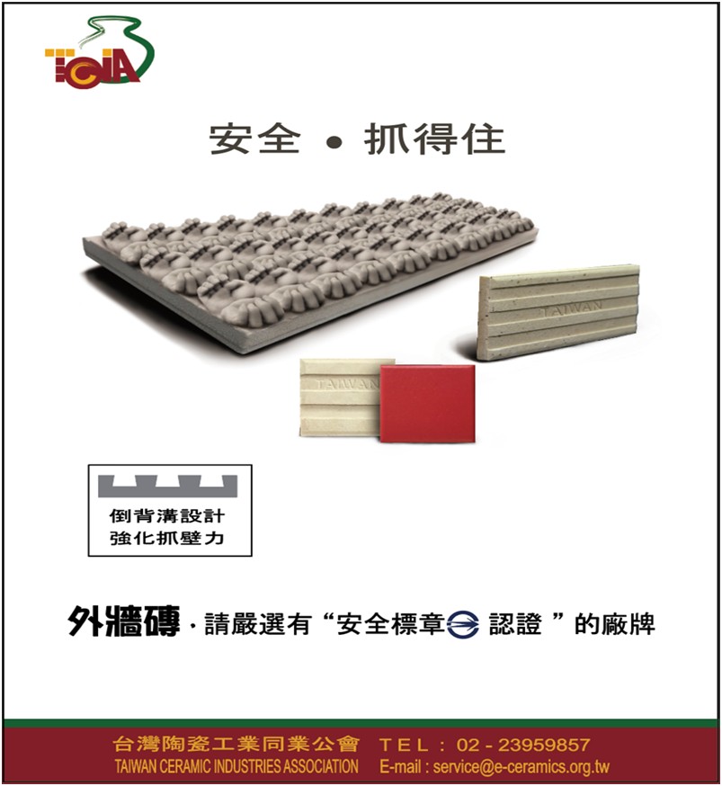 事實上,磁磚本身是最穩定且耐久的建材。問題的核心出在「施工品質」與「檢測制度」的不完善。為此,台灣陶瓷公會支持主管機關內政部國土管理署研議將外牆飾材納入「建築物公共安全檢查申報制度」,建立定期檢測與評估機制。同時,建議所有承攬磁磚工程的公司工班負責人,須具備勞動部勞動力發展署核發的「泥水(面材鋪貼項)技術士丙級以上證照」,以確保現場人員具備專業知識與實作能力。